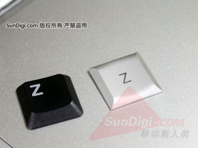 下图是PowerBook G4 12拆下键帽的图片,从键帽背面也可以隐约看到“Z”字母,而且弹性橡胶也是采用了透明的款式,可见它确实是为夜光键盘作好了准备: