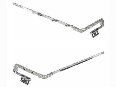 这种设计坏处就是转轴的结构复杂,而且屏幕无法打开到水平的角度,在PC笔记本电脑中,日系的SONY是最喜欢用这种转轴设计的(首见于其早期作品SR系列),但也没有苹果这样在全系列从小到大的笔记本电脑中均使用这种转轴来得彻底:),下图是PowerBook G4 12的转轴拆解图,和边框的套嵌和转轴自身的曲折之多在笔记本电脑中是罕见的设计,无可否认苹果把这些转轴做得很厚实不必担心耐用程度问题,但是这也直接导致了机身重量的增加: