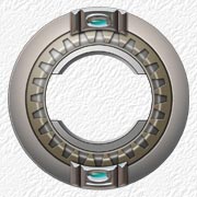 刚才,对大圆球进行过渡填充时,为了看清其它部件,将图层放在最下面了。但我实际上希望齿轮圆环具有在球面环中凹陷进去的感觉。所以,我首先到齿轮圆环图层,用魔术棒在齿轮圆环的外部点击,这将选中圆环外围的所有部分,反选,这样就得到了正好包括整个齿轮圆环在内的圆形选择域。回到刚才填充好的大球面图层,按下Delete键删除中间部分,并将图层拖到最上面来。为了使齿论圆环有凹陷的感觉,我在球面环图层的下面加了一个新层,按着Ctrl键并点击Layers控制版上球面环图层图标,调出球面环选择域,用黑色对新层进行填充(Alt+Delete),取消选择状态,并对其进行虚化以产生阴影效果。下边的Layers剪屏图中,上面的两层分别就是球面环和球面环阴影。注意球面环图层即第一层的层名旁边有Layer Style标志,表明我对这层用了Layer Style效果,我用了Bevel and Emboss子项,使其产生轻微的立体边效果。现在齿轮圆环象是凹陷进球面环内部了。