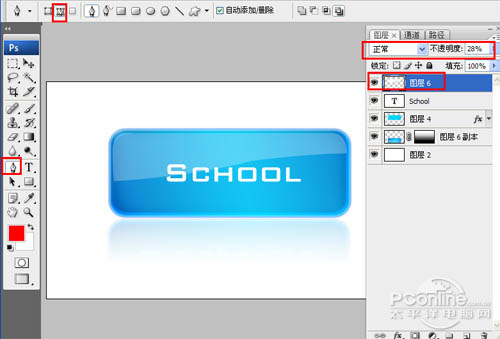 5、单击工具箱中的横排文字工具 ,输入school,然后在工具选项栏上设置字体参考图12,如图12所示。