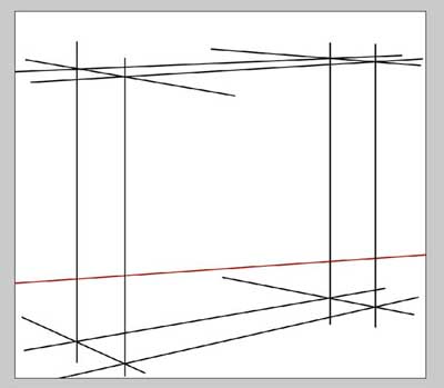 3、画图中的十二条包装线和一条背影线,其中要注意四条竖直的线要按住Shift键不动来画,它们相互平行,而另外的八根线则两两成对,相互几乎平行而又在远处相交。