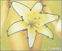 下图显示了一张艺术照片,通过使用磁性钢笔工具勾勒出图像中的花主体后所得到的路径以及所生成的路径经过添加/删除节点,调节节点位置、调节曲率等后期处理,所得到的最终路径,路径抠图最精彩地莫过于他的光滑曲线特征。(注意此时的路径与原始图像中花瓣边界处的完美结合)。