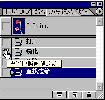 3)用鼠标单击锐化这层历史的左侧的小方块,这时方块内将会出现一个历史画笔的图标。如图2-32所示。