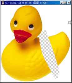 :这是一种可以擦除指定颜色的擦除器,这个指定色叫做标本色,表示为背景色。也就是说,使用它可以进行选择性的擦除。如图2-44所示。背景擦除工具只擦除了白色区域。其擦除功能非常灵活,在一些情况下刻达到事半功倍的效果。自己动手试试看。
