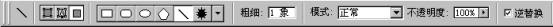 可以绘制直线和有箭头地线段。使用方法同前,鼠标拖拉的起始点为线段起点,拖拉的终点为线段的终点,按住Shift键,可以使直线的方向控制在0、45、90度。直线工具的任务栏如图9-45所示。