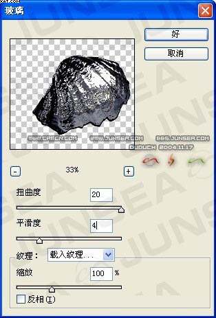 6.对“发光”层,再次使用“玻璃”滤镜,设置如图例。