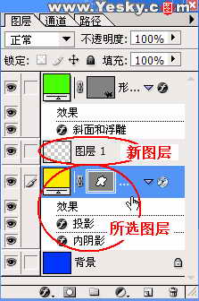 我们可以在图层面板上添加新图层然后向里面添加内容,也可以通过添加内容再来创建图层。一般创建的新图层会显示在所选图层的上面(图5)或所选图层组内。