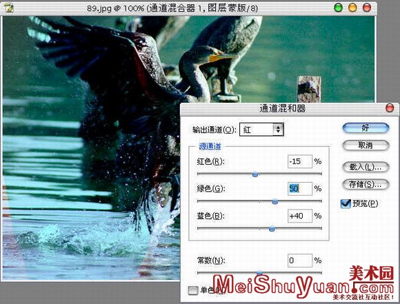 4)添加通道混合器调整图层,设置如图: