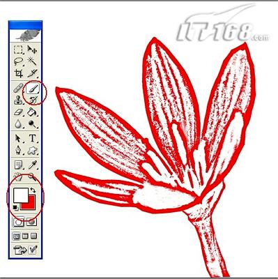 首先,使用[钢笔]工具,勾出花的轮廓。 | |