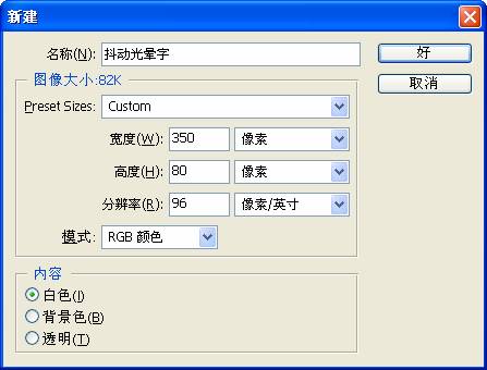 首先我们执行【文件】|【新建…】命令,或者按快捷键Ctrl+N,新建一个“宽度”为450像素;“高度”为150像素的“RGB图像”,将其命令为“抖动光晕字”。如图2-2-2所示。