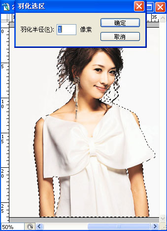 7、点击选择RGB,关闭蓝色副本的显示,回到图层面板,选择图片,点击 选择--反选(shift+ctrl+i),这时我们就选中了人物部分。然后羽化(ctrl+alt+d)数值不要太大。