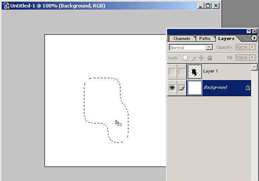 大家看到这个通道其实和上面的颜色通道没什么两样,还不是灰度图一张。对该通道按CTRL+鼠标左键点击,载入选区之后回到图层Layer面版。这时会看到规则的蚂蚁线选区。