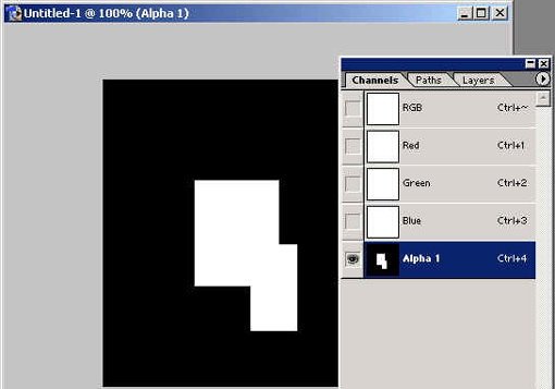 新建一个文档,用选区工具拉出两个矩形,在通道面版中保存为Alpha通道。