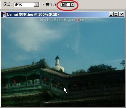 8.将笔刷的不透明度调低些(50%左右较合适),调整合适的笔刷大小,在图像的暗调区域上进行描绘,在画的过程中注意根据不同的图像区域调整笔刷的大小和不透明度。