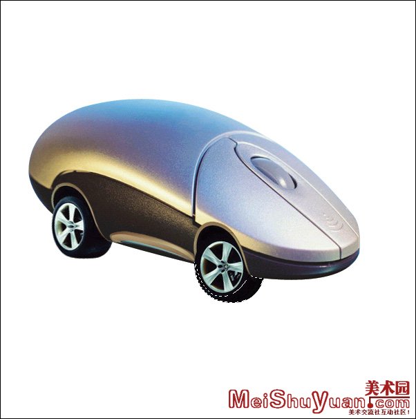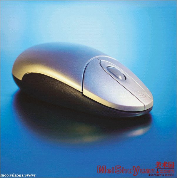 1.先将鼠标从图片中提取出来,办法就是用钢笔将鼠标外围轮廓勾出,并将所勾路径转换为选区,复制被选中的鼠标,再粘贴此鼠标,并将原先的底图也就是背景层删去或者填充为白色(图1)。<提图时尽量提的干净些,在转为选区后可以再收缩一个象素再复制粘贴>