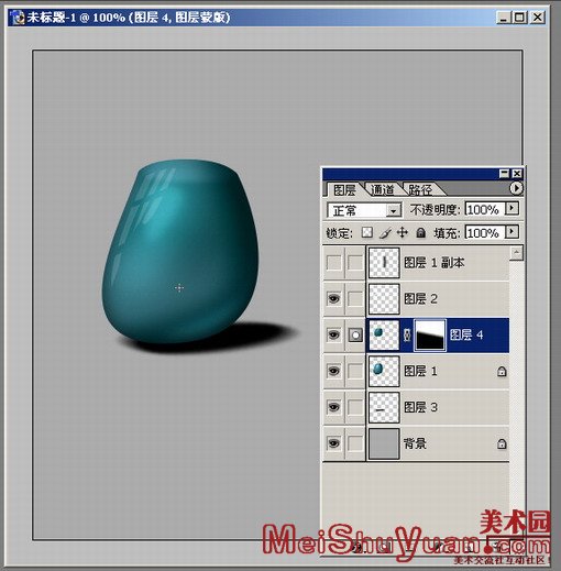 22、瓶口看起来效果可以。现在感觉瓶子有点透明感觉了。还要继续制作瓶子的内壁。注意内壁由于反射,会比较亮一点(瓶壁厚的时候都会有这种效应,来源于反射与全反射)。一样选择复制出来为新的图层(ctrl+j),然后调节的亮些。如图: