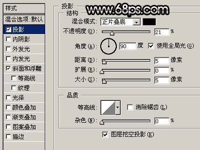 4、双击图层面板圆环图层的缩略图调出图层样式,参数设置如图4,5,效果如图6。