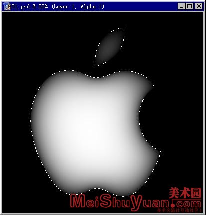 反色(Ctrl+I),拷贝后粘帖到一个新图层。有两种办法(也许通过图层效果也能达到,但比较麻烦,难得调整数值)来实现我们看到的苹果标志的那种因为边缘较薄而形成的"透亮"的质感。