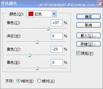 6、感觉图片还是有点偏红。我们点击“图像/调整/可选颜色”,可选颜色为“红色”,方法是“相对”。根据图片的颜色调试颜色。